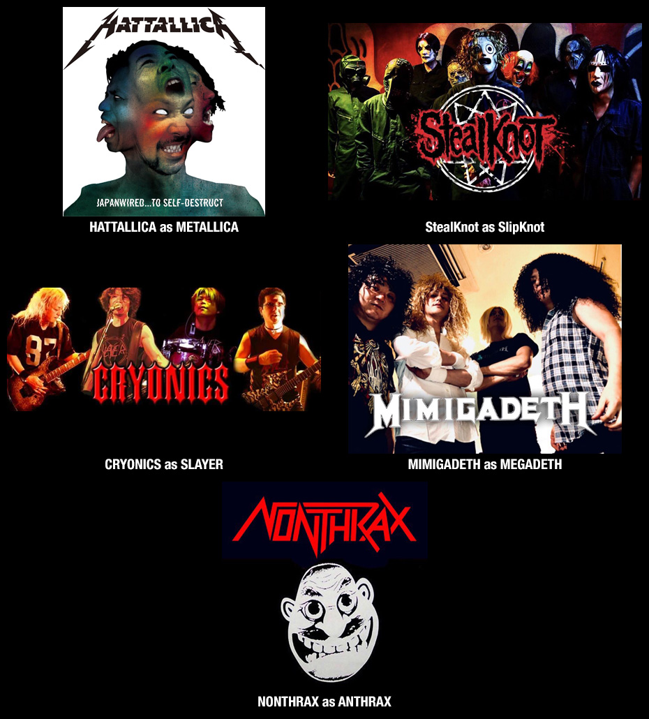 出演:HATTALLICA as METALLICA/StealKnot as SlipKnot / CRYONICS as SLAYER / MIMIGADETH as MEGADETH / NONTHRAX as ANTHRAX